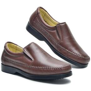 Sapato Social Masculino Couro Costurado Confortável Moderno - 45 - Marrom