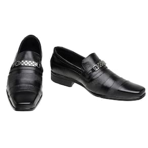 Sapato Social Masculino Couro Elástico Leve Bico Quadrado - 38 - Preto