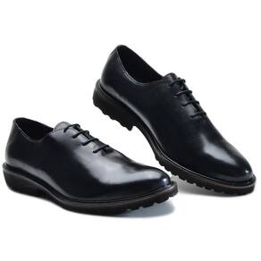 Sapato Social Masculino Couro Oxford Cadarço Confortável - 47 - Preto