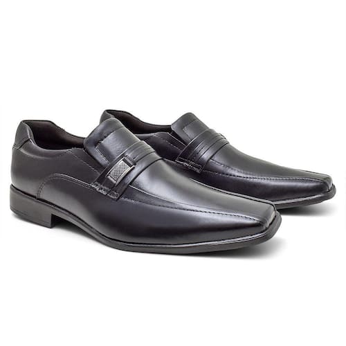 Sapato Social Preto 100% Couro Elastico Masculino Reuniao Elegante Fino Fork - 42 - Preto