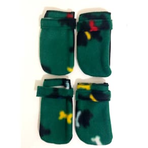 Principais características: - Sapato confeccionado em tecido soft verde - Solado emborrachado antiderrapante - Tiras aderentes para fechar com regulagem - Protege as patas em dias mais frios - Conjunto com 4 sapatinhos - Cor: verde - Tamanho: G - Medidas aproximadas: Largura: 6 cm, Altura: 11 cm - Ideal para cães e gatos