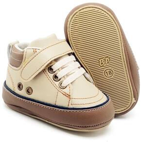 Sapato Tênis Bebe Baby Conforto Primeiros Passos Cano Alto Bege - 18 - Bege