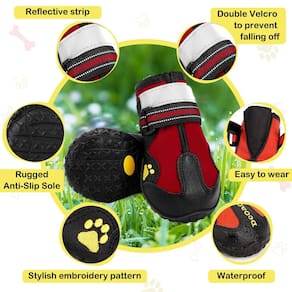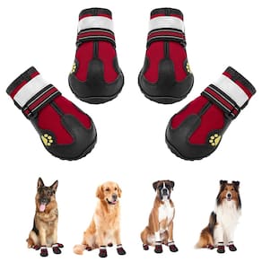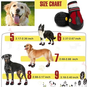 Botas impermeáveis para cães - Observação: a descrição do valor do peso nas botas para cães é apenas uma referência, certifique-se de medir a largura dos pés do cão de acordo com o vídeo da imagem principal. Para comprar botas de cachorro adequadas para cães. - Seleção de tamanho: Tamanho 8: Largura 7,3-8 cm. Ótimo para Rottweiler; Golden Retriever médio; Grande Samoieda; Pastor Alemão; Cane Corso; Labrador etc. As patas de cada cão são diferentes em tamanho. Escolha o tamanho correto para o seu amado cão. - Materiais de alta qualidade: Estas botas para cães são feitas de materiais de alta qualidade: Respiráveis, impermeáveis, resistentes ao desgaste e suportam solas sujas, duráveis, sola antiderrapante resistente que proporciona estabilidade e tração, ajuda os cães com mobilidade e estabilidade nos azulejos e na areia. - Confortável: estas botas para cães são flexíveis o suficiente, absolutamente macias e protetoras para as patas. Portanto, permita que as botas de cachorro grandes sejam usadas em ambientes internos ou externos, quentes e frias, em condições úmidas e secas confortavelmente. As botas para cães protegem os cães de espinhos afiados e pavimento quente. Protege eficazmente as garras do cão do calor, pedras, vidro, etc. As botas para cães protegem a pata fraca da neve, gelo e sal durante o inverno. - ?Segurança ajustável?: os sapatos para cães são fáceis de colocar e tirar. Estas botas para cães são firmemente fixadas por tiras, longas ajustáveis, capazes de evitar escorregões e fornecem aperto personalizado para fechamento seguro, tiras refletoras, linhas refletivas para melhorar a visibilidade durante toda a noite, enquanto torna o seu cão seguro. Depois de usá-los, tente apertar as alças de forma eficaz para evitar que os sapatos caiam das patas do cão