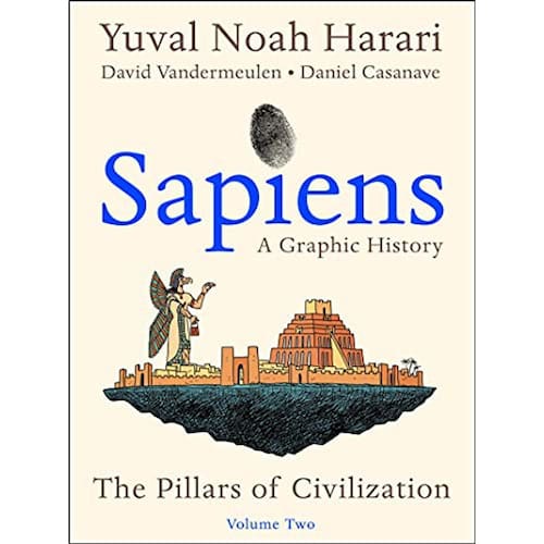 This second volume of Sapiens A Graphic History, the fullcolor graphic adaptation of Yuval Noah Harari s 1 New York Times bestseller, focuses on the Agricultural Revolutionwhen humans fell into a trap we ve yet to escape working harder and harder with diminishing returns. What if humanity s major woeswar, plague, famine and inequalityoriginated 12,000 years ago, when Homo sapiens converted from nomads to settlers, in pursuit of the fantasy of productivity and efficiency? What if by seeking to control plants and animals, humans ended up being controlled by kings, priests, and Kafkaesque bureaucracy? Volume 2 of Sapiens A Graphic HistoryThe Pillars of Civilization explores a crucial chapter in human development the Agricultural Revolution. This is the story of how wheat took over the world; how an unlikely marriage between a god and a bureaucrat created the first empires; and how war, plague, famine, and inequality became an intractable feature of the human condition. But it s not all doom and gloom with this book s cast of entertaining characters and colorful humorous scenes. Yuval, Zoe, Prof. Saraswati, Cindy and Bill (now farmers), Detective Lopez, and Dr. Fiction, all introduced in Volume 1, once again travel the length and breadth of human history, this time investigating the impact the Agricultural Revolution has had on our species. The cunning Mephisto shows them how to ensnare humans, King Hammurabi lays down the law, and Confucius explains harmonious society. The origins of modern farming are introduced through Elizabethan tragedy; the changing fortunes of domesticated plants and animals are tracked in the columns of the Daily Business News; the story of urbanization is portrayed as a travel brochure, offering discount journeys to ancient Babylon and China; and the history of inequality unfolds in a superhero detective story; with guest appearances by historical and cultural personalities throughout such as Thomas Jefferson, Scarlett O Hara, and Ruth Bader Ginsburg. Sapiens A Graphic History, Volume 2 is a radical, witty and colorful retelling of the story of humankind for adults and young adults, and can be read on its own or in sequence with Volume I.