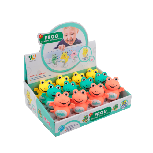 Ação de Andar: Puxe a corda e veja o sapinho andar, criando uma brincadeira interativa e cheia de diversão.Conjunto Completo: Inclui 12 sapinhos encantadores, perfeitos para compartilhar com amigos ou como lembrancinhas em festas.Material Durável: Feitos com materiais de alta qualidade, garantindo segurança e durabilidade para horas de entretenimento.Design Divertido: Cores vibrantes e detalhes encantadores que capturam a atenção das crianças, tornando a brincadeira ainda mais envolvente.Display Prático: Vem com um display organizado, facilitando a exposição e o acesso aos sapinhos.O Sapinho de Corda é uma excelente escolha para presentear ou adicionar uma dose extra de alegria ao dia a dia das crianças. Traga sorrisos e movimento para as brincadeiras com esses sapinhos adoráveis!