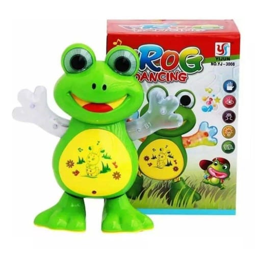 Sapo Dançante Brinquedo Musical Anda Dança Mexe Com Luz E Som Sapo dançante brinquedo musical dança anda mexe luz e som Com o pato dançante a diversão é garantida, anda para os lados, mexe os olhos, possui luz colorida e som que chama a atenção das crianças e deixa a brincadeira ainda mais divertida. Características: - indicado para maiores de 3 anos - material: plástico - medidas aprox. : a 19,5cm x l 9,5cm x c 18cm - utiliza 3 pilhas aa não inclusas Inmetro: 008511/2022 Homologação Inmetro: 4092/2018-BRI-17-TR