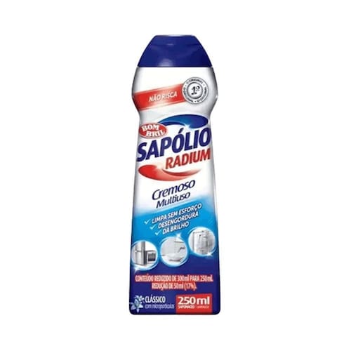 Sapolio Cremoso Radium Classic 250ml Sapólio Radium Cremoso Clássico 250ml O Sapólio Radium Cremoso Classic ajuda a desengordurar, limpar sem esforço e não risca. Além da praticidade de uma limpeza rápida e eficiente