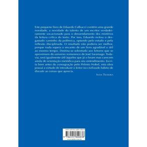 Este pequeno livro de Eduardo Calbucci contém uma grande novidade, a novidade do talento de um escritor verdadeiramente vocacionado para o desvendamento dos mistérios da leitura crítica do texto. Por isso, Eduardo evitou o desgastado caminho da polêmica, optando pelo estudo e pela reflexão disciplinada. O resultado não poderia ser melhor, porque nada supera o encanto de um livro agradável e útil ao mesmo tempo. Destina-se sobretudo aos leitores que se aproximam do universo romanesco de José Saramago. Todavia, será igualmente útil àqueles que já o leram mas carecem ainda de orientação metódica para seu entendimento. Escrita bem antes da consagração pelo Prêmio Nobel, esta obra possui a virtude de introduzir o leitor no civilizado hábito de discutir as coisas que aprecia. [Ivan Teixeira]