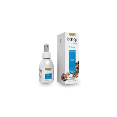 Sartop Spray - 100 Ml Sartop Spray é indicado no tratamento das sarnas provocadas pelos ácaros Sarcoptes scabiei, Chorioptes bovis e Psoroptes ovis, dos animais domésticos. Sartop Spray constitui um tratamento eficaz, moderno e de fácil aplicação pois não requer diluição. Uso Tópico. Frequência de Utilização: 1 vez ao dia Duração do tratamento: Pelo menos 3 dias, ou a critério do Médico Veterinário Observações: - Agitar bem antes de usar - Lavar as partes afetadas com água e sabão, enxaguar bem o animal - Aspergir a parte afetada e arredores, mantendo sempre o frasco na posição vertical, a uma distância aproximada de 10 a 15 cm - Utilizar uma quantidade necessária do produto que cubra totalmente a área afetada, molhar bem a pele do animal - Utilizar luvas de borracha para aplicação do produto. Fabricante: UCBVet Marca: Não Informado Ean: 7898006194235