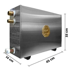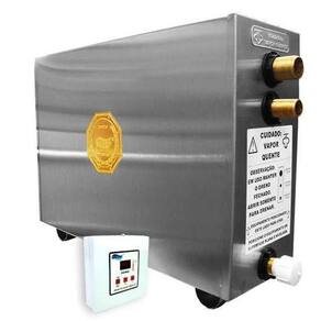 Sauna vapor elétrica 12kw bifasico 220v inox impercapDescrição do produtoEssa sauna atende um ambiente de até 15m.Favor verificar a voltagem do local de instalação do equipamento antes de realizar a compra.Atenção: no caso de ambientes com vidro porta, janela, parede , recomenda-se que o mesmo seja temperado e deverá ser utilizada a seguinte regra para dimensionamento: para cada 1 m de vidro, acrescentar 0,8 kw de potência à sauna indica para o seu ambiente.As saunas a vapor impercap são compactas apenas no tamanho, perfeitas para uso residencial ou comercial. Todos os geradores de vapor são equipados com duplo estágio, proporcionando maior segurança, durabilidade e economia de energia.Conta com exclusivo painel de comando digital, de fácil instalação e uso intuitivo, graças a alta tecnologia utilizada, além do tamanho reduzido e alta qualidade de construção, o que a difere de outras saunas disponíveis no mercadoEquipamento nacional construído em aço inox em seu tanque interno, gabinete externo, resistências e boia para maior durabilidade. Para sua maior comodidade e segurança os aparelhos da impercap saunas são desenvolvidos com um dispositivo de segurança, fazendo com que a máquina não funcione sem o fio terra e nem sem água.Painel de comando digitalControla a temperatura do ambiente da sauna, possui um timer de 5h caso o usuário esqueça de desligar a sauna, o equipamento irá desligar dentro de 5h.A distância máxima recomendada do sensor de temperatura para o painel de comando é de 20 metros, acima disso a leitura pode ser prejudicada.O cabo recomendado para emenda do fio do comando é: fio paralelo de 2 vias - 30mmObservação: o quadro de comando já acompanha o bulbo sensor.Informações importantesTodos os equipamentos acompanham kit básico de instalação:- 1 manual- 1 painel de comando digital 12v- 1 protetor de bulbo em aço inox utilizado para proteger o sensor do painel de comando digital - 1 flexível 1/2 com trama de aço 40cm para entrada de água Painel digital: 12,5 cm de altura x 12,5 cm de largura x 3,5cm de profundidade.Observação: o painel de comando não pode ser instalado no tempo, nem no interior da sauna e sim em um local seco e protegido, evitando-se áreas úmidas e a exposição direta à luz do sol, chuva e/ou outras fontes de calor. O não cumprimento desta informação acarretará na perda de garantia impercap.Garantia: 12 meses de garantia contra defeito de fabricação