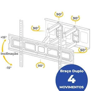 Descricao Suporte para TVs Multiarticulado Maxima seguranca para seu equipamento!O Suporte para TVs Multiarticulado e o produto mais completo da linha, garante total seguranca para televisores maiores, com movimentos em 4 direcoes enquanto ainda esta preso na parede. Voce pode girar na horizontal e tambem fazer ajustes de inclinacao, seja para cima ou entao para baixo.Compativel com televisores de tela LCD, LED, OLED, QLED e Plasma, de 37 a 80 polegadas pelo padrao VESA, foi desenvolvido para ter uma instalacao pratica enquanto garante alta seguranca e organizacao para seu equipamento, porque nao deixa seus cabos soltos e baguncados na partes de tras, organize-os dentro do proprio Suporte com o completo organizador de seu ambiente muito mais organizado, com espaco limpo sobrando!O suporte acompanha o kit instalacao que compoe de parafusos, buchas, arruelas e manual. Tamanhos de :37 a 80 polegadas VESA suportados (mm):200200, 200300, 300200300300, 400200 400300400x400, 600x200, 600x400 Peso suportado:Ate 40 Kg contando Suporte e Distancias da parede:Minimo 80mm - Maximo 430mm.Articulacoes do SuporteEste suporte possui 4 movimentos, um a mais que seu comparativo, ele pode ser afastado com mais espaco da parede onde esta instalado, voce pode inclinar tanto na horizontal como na vertical a sua sala tem o cantinho perfeito do sofa, com o SAV-4600 sua pode ficar na posicao perfeita para assistir seu programa favorito!Assista em qualquer posicao no seu quarto, sala, cozinha, area de lazer, ate mesmo salas empresariais e de reunioes!Seguranca em primeiro lugarTer uma grande de ate 80 polegadas parece dificultar a movimentacao, mas com o Suporte Multiarticulado da Aquario e facil e sem perigo de acidentes, porque possui braco duplo para aumentar a resistencia ao peso!Um investimento desse tamanho merece um suporte a alturaUm suporte simples, por mais barato que seja, pode sair caro voce gosta de ter a na posicao perfeita enquanto esta assistindo sua serie favorita, seja na cama ou no canto do sofa, um Suporte de ma qualidade vai entortar sua estrutura, deixando o equipamento desnivelado que nunca mais vai parar na mesma posicao de posso fixar meu suporte?Os suportes da Aquario sao produzidos com otimos materiais, mas de nada adianta se ultrapassar a resistencia de sua parede. cuidado e procure instalar em paredes de concreto e alvenaria, paineis de madeira ou blocos macicos. Assim voce pode perfurar e fixar o suporte com total seguranca, sem se preocupar se uma hora sua ira paineis de madeira e paredes Dry Wall voce precisa verificar a resistencia se e resistente o suficiente.Acessorios e Kit de instalacaoAlem do Kit de instalacao completo, que conta com parafusos, buchas e arruelas pra varios tipos de superficies, acompanha o nivel tipo bolha do proprio suporte, assim voce sabera facilmente se esta reto o suficiente pra fazer a furacao.Acompanha organizador de cabos, o proprio suporte consegue esconder seus fios na parte interna ao prender com o organizador!*Imagens meramente ilustrativas.Especificacao Tecnica CODIGO DO PRODUTOSAV-4600PADRAO VESA (MM)200x200200x300300x200300x300400x200400x300400x400600x200600x400LOCAIS DE INSTALACAOAlvenaria, painel de madeira e MDF, Dry WallPOLEGADAS SUPORTADA37 a 80 PolegadasINSTALACAO DO SUPORTEVem pre montado - Facil instalacaoMATERIALAco Carbono com pintura resistente, epoxi eletrostatica (anticorrosiva)DISTANCIA MINIMA DA PAREDE80 mmDISTANCIA MAXIMA DA PAREDE430 mmPESO MAXIMO SUPORTADO40 KgPESO DO PRODUTO3,9 Kg