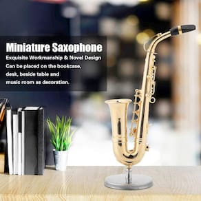 - Esta é uma bela reprodução em miniatura do saxofone (nenhum instrumento simulado pode ser tocado), requintada e bonita. Estojo em miniatura.
