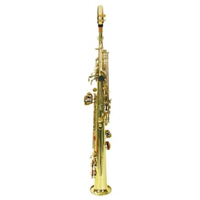 Saxofone Soprano (Bb) SS 200 Laqueado New York afinação em Sib possui recurso de F# Agudo, sapatilhas especiais com refletores metálicos, um tudel reto e 01 levemente curvo, com estojo e acessórios.