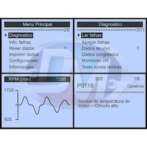 O único scanner automotivo do mercado que tem sua linguagem totalmente em português do brasil, incluindo mais de 7.000 falhas em português + todos os menus e mensagens do aparelho + gráficos totalmente em português.