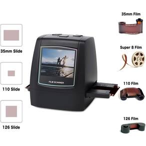 Scanner multifuncional para filmes/slides/negativos de 35mm, 135, 110, 126 e Super 8. Converte para JPG digital, possui memória interna de 128MB e tela LCD de 2.4 polegadas.DIGITNOW Scanner multifuncional de 22 MP, converte filmes/slides/negativos de 35 mm 135 110 126 e Super 8 filmes/slides/negativos em fotos JPG digitais, memória embutida de 128 MB, tela LCD de 2,4 - Converte filmes, slides e negativos de 35 mm/135, 110, 126 Kpk e super 8 em formato JPEG digital em 2 segundos. - Independente e sem necessidade de computador, transfere seu filme/slides antigos para imagem colorida ou preto e branco em cartão SD (até 32 GB, não incluído) e suporta ajustar o brilho ou a cor da imagem. - Com interpolação de software, qualidade de foto digitalizada de até 22 megapixels - Compatível com Mac e PC, transfere imagens de alta resolução para o seu computador, laptop, smartphone e tablet - Veja as fotos digitalizadas diretamente no 2. Tela LCD colorida de 4 polegadas ou conecte-a à TV para uma tela maior. Fácil de operar para idosos.