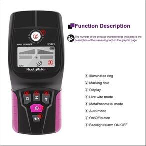 ESPECIFICAÇÃO * Profundidade máxima da exploração: 11cm * Metais ferrosos: 11cm * Metais não ferrosos (tubo de cobre): 11cm * Condutores de cobre (ao vivo): 5 cm * Madeira: 2,5 cm * PVC: até 1,5 cm - o cano deve estar com água * Desligamento automático após aprox: 5min * Condição de operação: * Temperatura: -10 a 50c * Umidade: menor que 75% * Altitude: menor que 2000m * Temperatura de ar_mazenamento:-20c a 70c * Modelo: WS-120 * Tipo de bateria: 3 pilhas AAA alcalina (não inclusas) * Dimensões: 185 x 85 x 33mm * Peso: 180g