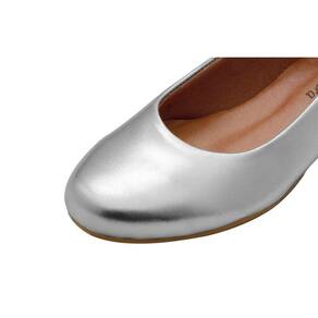 Linha de Scarpin Boneca Salto Baixo Grosso 3cm Luiza Sobreira, bico redondo, produzido em material sintético na cor Prata, com palmilha e forro em P.U., solado em TR.