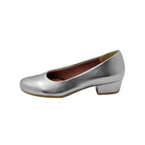Linha de Scarpin Boneca Salto Baixo Grosso 3cm Luiza Sobreira, bico redondo, produzido em material sintético na cor Prata, com palmilha e forro em P.U., solado em TR.