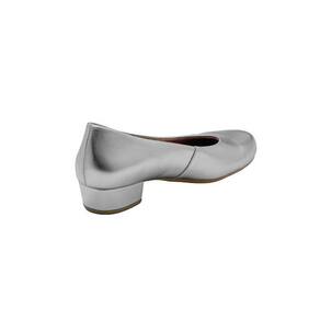 Linha de Scarpin Boneca Salto Baixo Grosso 3cm Luiza Sobreira, bico redondo, produzido em material sintético na cor Prata, com palmilha e forro em P.U., solado em TR.
