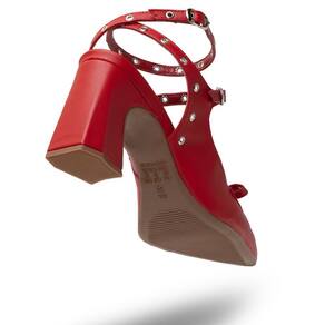 Scarpin Casual Feminino com Salto Grosso Laço e Fivelas - 38 - Vermelho