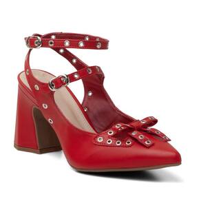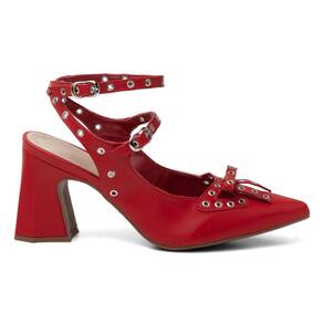 Scarpin Casual Feminino com Salto Grosso Laço e Fivelas - 36 - Vermelho