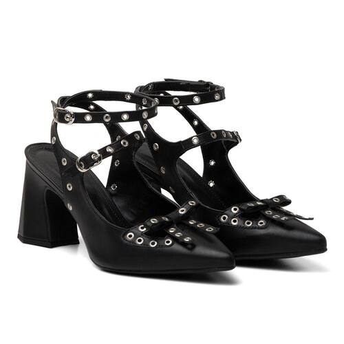 Scarpin Casual Feminino com Salto Grosso Laço e Fivelas - 36 - Preto