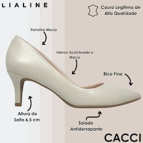 O Scarpin Feminino LIA LINE em Couro Napa Nuvola é a escolha perfeita para quem busca elegância e conforto. Seu cabedal em couro macio oferece durabilidade e um toque refinado, enquanto o design de bico fino alonga a silhueta e confere sofisticação. A palmilha é acolchoada, garantindo conforto para o uso diário, e o solado de borracha proporciona aderência e segurança ao caminhar. Com salto fino de 6,5 cm, ele é o equilíbrio perfeito entre altura e estabilidade, ideal para o office ou ocasiões especiais. Fechamento encaixável, o modelo destaca-se por seu acabamento impecável e respirabilidade, sendo um item clássico e atemporal que toda mulher deve ter!