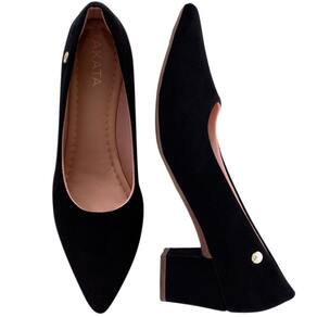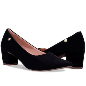 Scarpin Feminino Salto Grosso Camurça - 34 - Preto