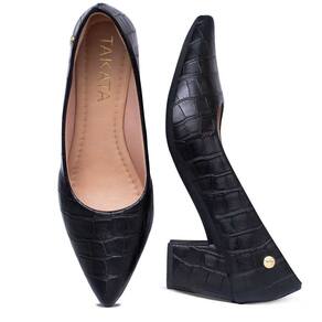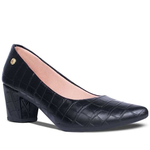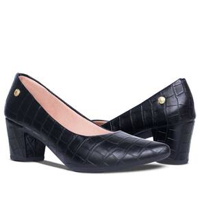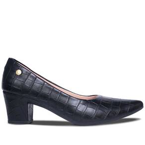 Scarpin Feminino Salto Grosso Croco - 34 - Preto
