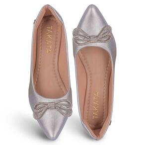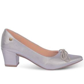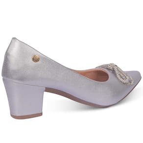 Scarpin Feminino Salto Grosso Metalizado Laço Strass - 34 - Prata