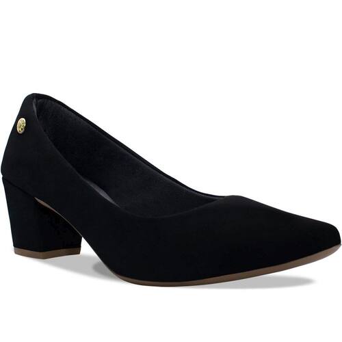 Scarpin Feminino Salto Grosso Nobuck - 35 - Preto