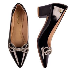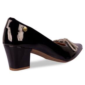 Scarpin Feminino Salto Grosso Verniz Laço Strass