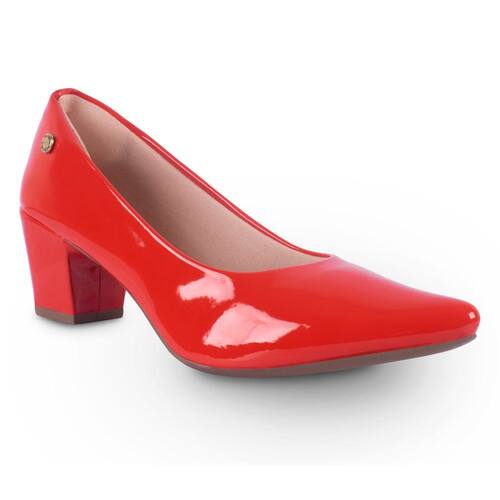 Scarpin Feminino Salto Grosso Verniz - 40 - Vermelho