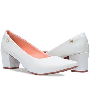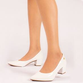 Scarpin Feminino Salto Grosso Verniz - 34 - Branco