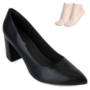 Nome: Scarpin Salto Piccadilly e Meia PD23-74513. Gênero: Feminino. Indicado Para: Moda-Dia a dia. Estilo da Peça: Social. Ocasião: Dia a dia. Material Externo: Alternativo. Material Interno: Têxtil macio. Palmilha: Almofadada. Solado: Borracha antiderrapante. Tipo de Salto: Médio, grosso. Altura do Salto: 7 cm. Peso do Produto: 753 g (o peso varia de acordo com a numeração). Garantia do Fabricante: Contra defeito de fabricação. Origem: Nacional. Código Produto: 02012452. Marca: Piccadilly. Acompanha um par de meias fina tamanho único. Composição: 85 % Poliamida. 15 % Elastano.