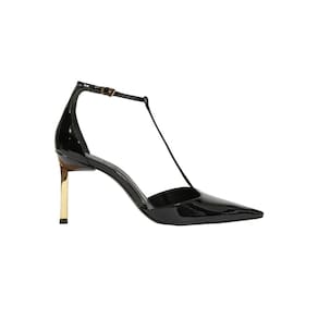 Esse pump é puro poder, né? Feito em couro com acabamento verniz, ele tem o bico fino e a tira salomé que deixa o look superelegante. A fivela no tornozelo e o salto fino com acabamento metalizado fazem toda a diferença, garantindo aquele toque de glamour que a gente ama.