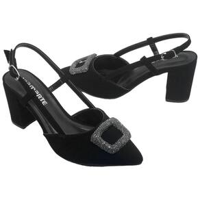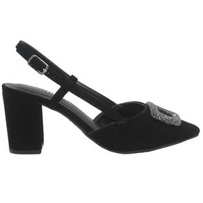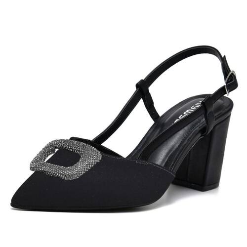 A parte do calcanhar é aberta, enquanto a parte da frente permanece fechada, criando um visual refinado. Tiras envolvem delicadamente a parte do pé que fica à mostra, finalizando com um fechamento por fivela na lateral, proporcionando um ajuste perfeito.