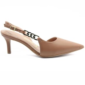 O scarpin Vizzano com salto baixo é ideal para quem valoriza o conforto. O diferencial do modelo fica por conta do design com tira, conhecido como slingback, enquanto o bico fino sofistica o estilo.