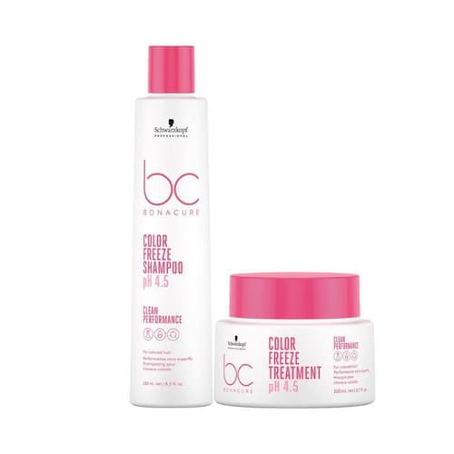 Schwarzkopf Bc Color Freeze Ph 4.5 Shampoo 250Ml E Máscara 200Ml A linha BC Color Freeze pH 4.5 é formulado para: cabelos coloridos. Reequilibra a estrutura do cabelo até um pH ideal de 4,5, fornecendo proteção da cor do cabelo com praticamente zero perda de cor.
