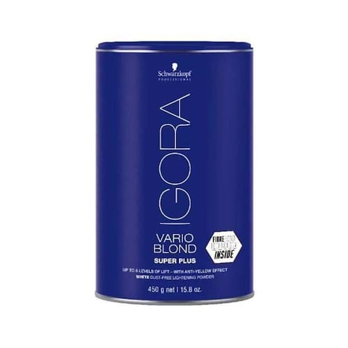 A IGORA Vario Blond Super Plus foi reformulada com a Tecnologia Fibre Bond. Proporciona até 8 níveis de clareamento. Pó descolorante compacto branco. Com a Tecnologia Fibre Bond integrada para reforçar as pontes no interior da fibra capilar. Reduz significativamente a quebra do cabelo. Neutralização de elevada performance. Misturar 35 g de Igora Vario Blond Plus com 70 ml de Igora Royal Loção Ativadora Lipídio Oleica (1:2). Loção de 10 vol. , 20 vol. Ou 30 vol. Obter uma consistência suave e cremosa. Aplicar imediatamente após o preparo. Somente uma distribuição uniforme e adequada de produto garante a melhor equalização. Aplicar cuidadosa e uniformemente em mechas, no cabelo seco e não lavado, começando na área da nuca. Tempo de Pausa - 20 a 45 min., dependendo da textura, loção ativadora utilizada e do resultado desejado. Após o tempo de pausa, lavar com água morna abundantemente e shampoo. Seguir as orientações contidas no produto. Uso PROFISSIONAL