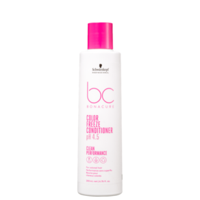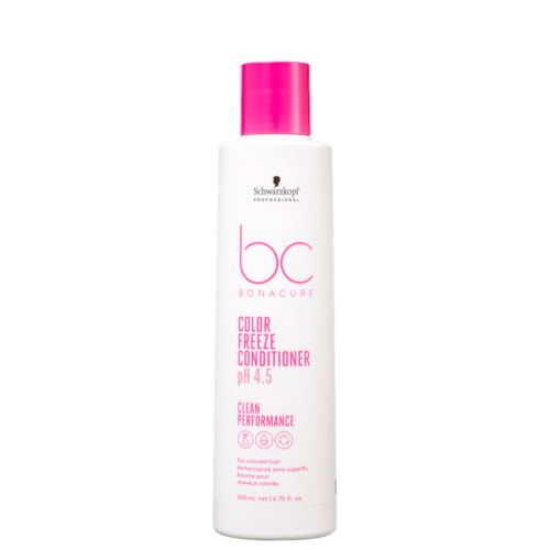 O Condicionador Schwarzkopf Professional BC Bonacure Clean Performance Color Freeze facilita o desembarace e melhora a capacidade de pentear o cabelo. Ajuda a trazer o cabelo ao seu nível de pH ideal de 4.5. A linha Color Freeze para cabelos coloridos com pH 4.5 reequilibra a estrutura do cabelo para um nível de pH ideal e protege a cor do cabelo, evitando o desbotamento.