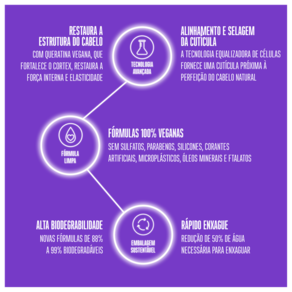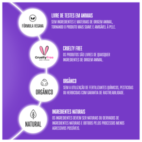 Produto vegano, livre de Sulfatos, Silicones e Parabenos.