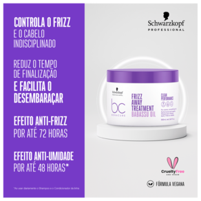 A Máscara Capilar Schwarzkopf Professional BC Bonacure Clean Performance Frizz Away melhora o desembaraçar e o pentear através de uma fórmula antifrizz que suaviza a superfície do cabelo e recupera a maleabilidade instantaneamente, além de dar muito brilho. Ele é ideal para tratar cabelos grossos.