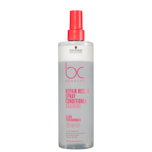 Schwarzkopf Professional BC Bonacure Clean Performance Repair Rescue Spray Conditioner é indicado para melhorar a penteabilidade, fornecer proteção térmica ao secar e suavizar e selar a superfície do cabelo, além de proporcionar brilho.