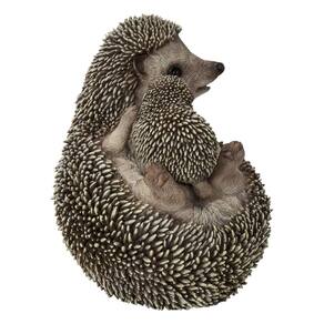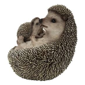 Hi-Line Gift Ltd, ouriços para mãe e bebê na parte de trás, 6,9 polegadas de altura, estatueta de estátua interna e externa, preta e bege