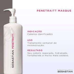 A fórmula de Sebastian Professional Penetraitt penetra na fibra capilar para resgatar a força e o brilho perdidos com as agressões externas. Além disso, protege dos futuros danos causados por químicas e pelos acessórios térmicos. Assim, você conquista cabelos revitalizados e recuperados intensamente, com saúde e proteção.