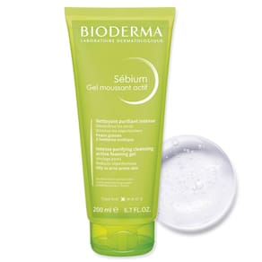Sébium Gel De Limpeza Purificante Intensivo Bioderma Moussant Actif Sébium Gel Moussant Actif, gel de limpeza antiacne para peles oleosas e acneicas. Sua textura gel se transforma em uma espuma suave que deixa a pele suave e confortável. Sébium Gel Moussant Actif respeita o equilíbrio natural da pele. Desobstrui poros e reduz a acne. Não comedogênico, sem sabão. Boa tolerância cutânea. Testado sob supervisão dermatológica. MODO DE USAR Aplicar na pele molhada. Massageie até virar uma espuma leve e enxágue gentilmente. Usar manhã e/ou noite. RESULTADOS Desobstrui poros 73%, reduz imperfeições da acne 70% e reduz o brilho 79%. (1)Teste subjetivo da eficácia de Sébium Gel Moussant Actif – 14 dias de aplicação – 33 voluntários