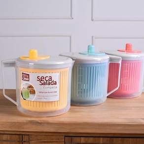 A centrífuga de saladas seca as folhas, as deixando prontas para serem servidas sem excesso de água e mantém uma maior durabilidade para a salada. Além disso ela serve como jarra dosadora.