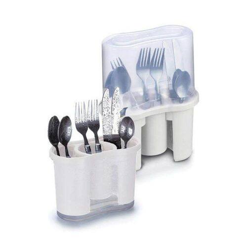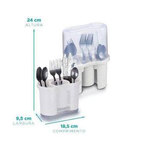 Seca Talheres Escorre & Guarda Com Tampa e Divisórias 53x49x13Cm Branco Nitron Seca e Escorre Talheres Com Tampa na cor Branco - NitronModerno E Prático, com sua tampa em plástico, possui três divisórias para separar talheres de forma simples e funcional. Material incrivelmente resistente BPA Free Livre de BPA - O BPA é uma substância química que faz mal à saúde Dimensões aproximadasPeso 150gLargura 9,5cmComprimento 18,5cmAltura 24cmCapacidade 2,1 litrosCod. 224BNitron