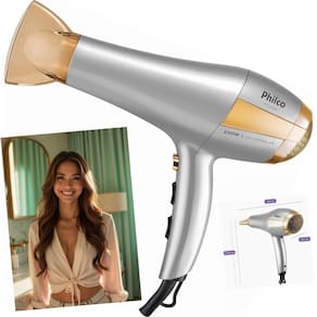 - **Modelo:** PSC2600 - **Marca:** Philco - **Cor:** Prata e Dourado - **Potência:** 2100 watts - **Voltagem:** 110 Volts ou 220 Volts (escolha a voltagem correta) - **Dimensões do produto:** 9,5 x 30 x 27,9 cm - **Peso:** 5 kg - **Motor:** DC - **Velocidades:** 2 - **Temperaturas:** 3 - **Função Cool shoot:** Sim - **Bocal concentrador:** Sim - **Tecnologia:** Tourmaline Íon - **Cordão elétrico:** 1,8 metros - **Certificação:** INMETRO: BRA20/01415 - **EAN:** 7891356113550 - **ASIN:** B0D8V39S9N - **Fabricante:** Philco